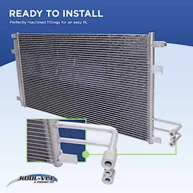 • Kool Vue A/C condensers are designed to be an exact match for your vehicle’s factory condenser.