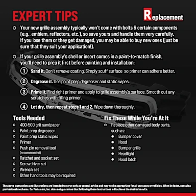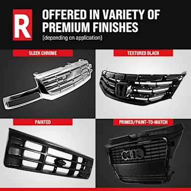 - Each Replacement brand grille assembly is manufactured using the same processes as the original, ensuring excellent fitment and a quality finish.